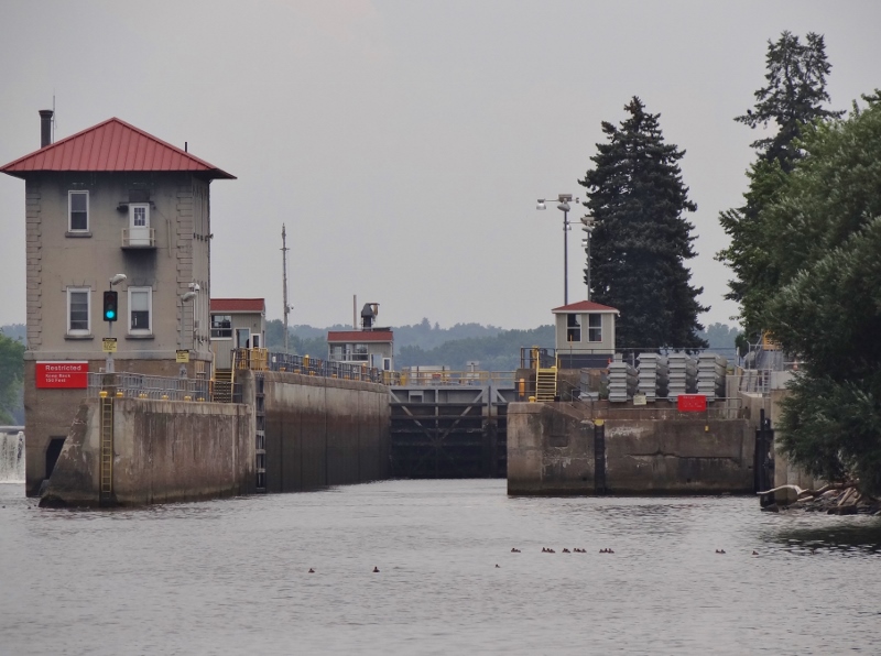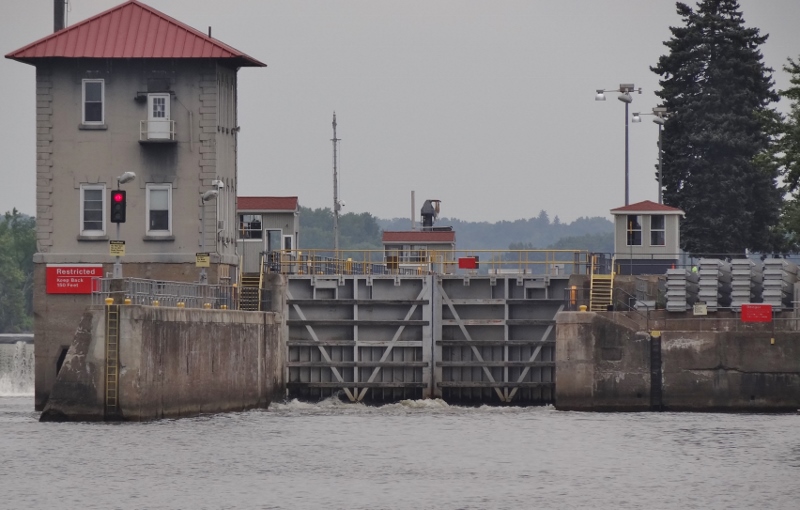 Procedure is you hail the lockmaster on VHF 13 when you are “close” and he tells you how long of a wait, because the lock is never ready for you, even if it’s in the correct position for the direction you are traveling. At best, 5 minutes, worse case 20 minutes. We didn’t know it at the time, but our 20 minute wait was due to another boat heading north, locking through just before we approached. This required a wait for the water level to come up 16ft, then for it to flow out so we could enter at our lower level.