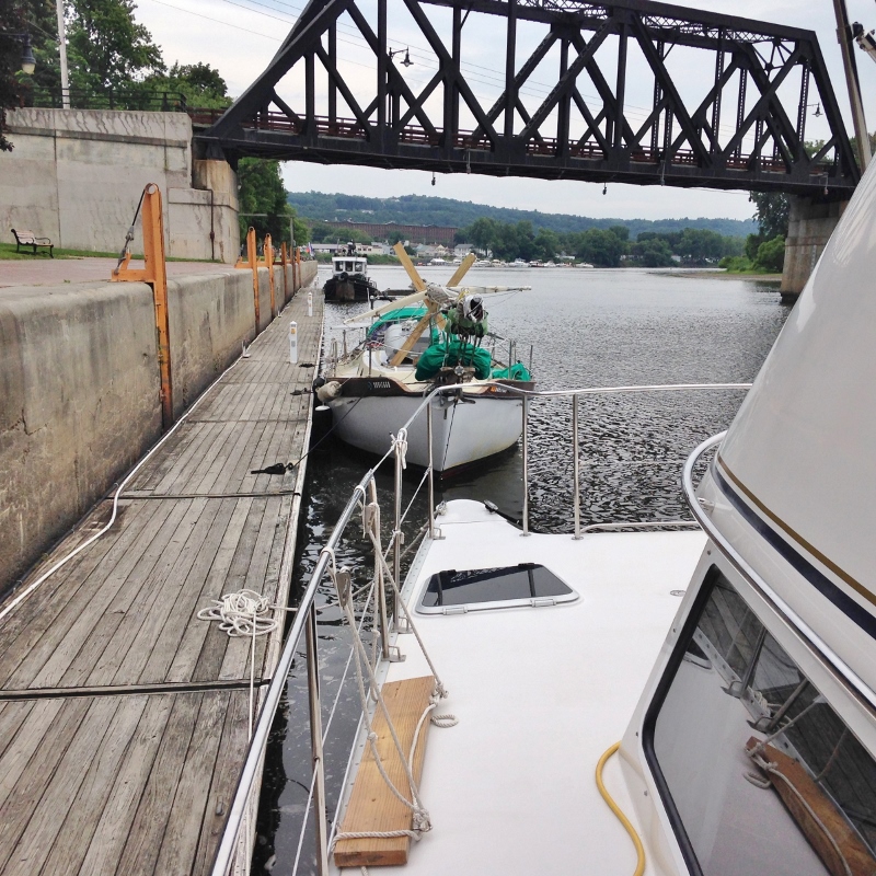 The Federal Lock at Troy came at the end of our day, Aug 2. Troy, aka “the collar city”, is just a few miles south of Waterford. Now, we thought our research on the locks, bridges and places of interest was pretty thorough. Russ did most of it ahead and I caught up. We had several charts loaned to us by friends Mike and Ann, multiple online resources including blogs and official sites that provided detailed info on the locks and bridges, and of course ActiveCaptain. We even knew peeps who’d gone up to the Lake or done the Erie Canal, so we had some info from them. Guess what? STILL NOT ENOUGH! Nothing like first hand experience to learn the ropes 🙂