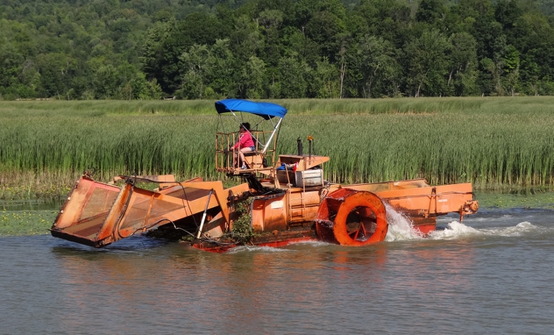 Surprised by these orange paddle wheel/boat machines as we came around a bend. What the heck? Some quick research along with confirming info obtained at the Maritime Museum, told the story. Gotta get these plants at a certain time to make the effort effective, but from what we read it’s a losing battle. But hey, what a cool ride!