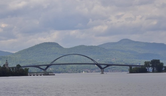 One can cross from the Vermont side in style, but passengers only. Docks near the fort.