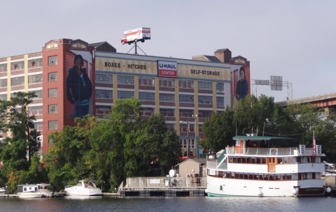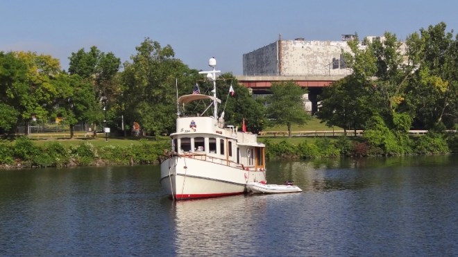 Paddle tour boat stopped briefly at Mechanicville.