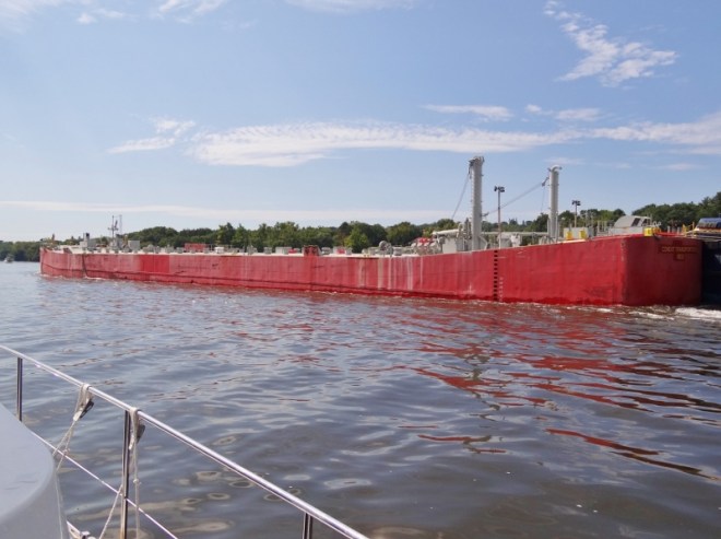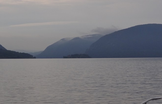 On the Hudson, 2 hrs N of Kingston we pass this tug and barge. So long the tug wouldn’t fit in the photo
