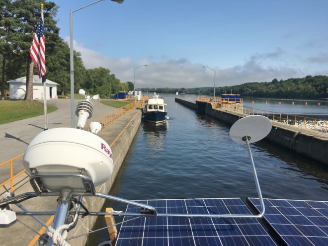 Between Mechanicville and Waterford there’s only two locks. M/V Gypsy was also at Mechanicville, headed south so we had company in the locks.