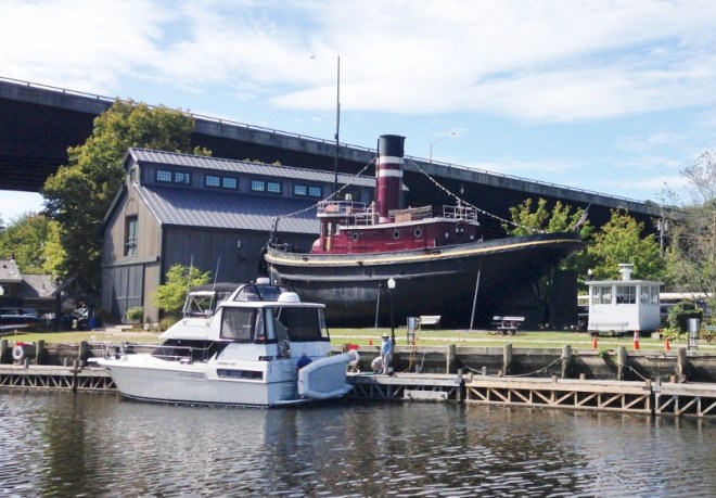 In the “small world” category, one the boats docked closer to the lock (E1) walked over and asked if we’d been hauled out at Seaport Marine last summer. Well, yes! I’m not sure if we spoke to one another then (maybe he and Russ did) but he remembered we’d been there “a while.”