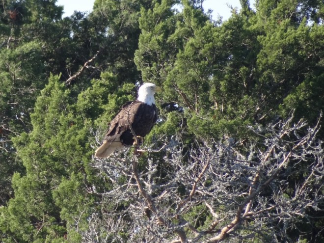 Delayed leaving this peaceful spot until 8:30 so that the tide would be up a bit in the Little Mud River- another stretch where if you draw more than 4 ft you want some tide assist. We went through two hours after low tide and saw no less than 8 ft- but the moon cycle is providing at least a foot more water than typical.