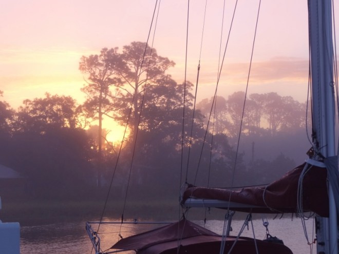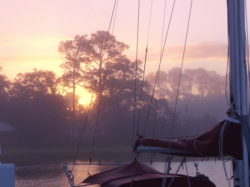 Morning fog showed signs of lifting, but whether it did or not, we had to get going with a long day ahead. Next stop, Pine Island- north of St. Augustine.