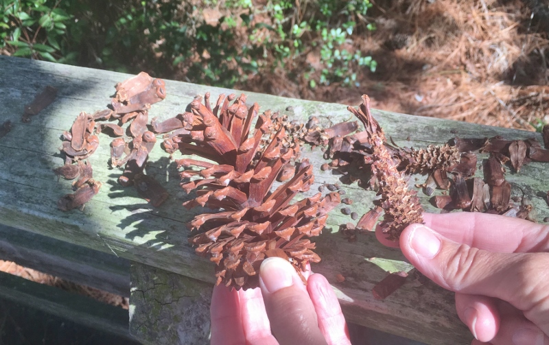 The squirrels left out the remains of daily snacking- gave us a never-before look at the inside of a pine cone that’s been stripped.