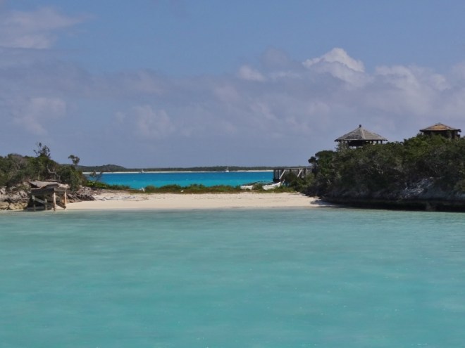 Rolle Cay is quite small and it offers a window view to the southern section of Sand Dollar Beach. Remains of abandoned “resort” perched on either side of the opening