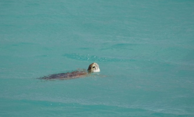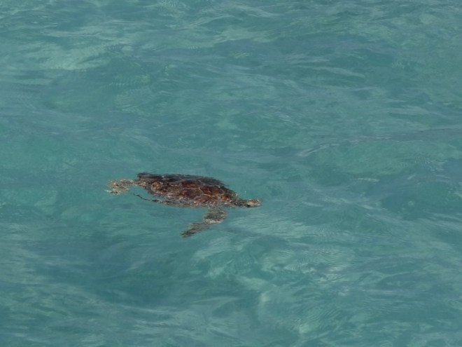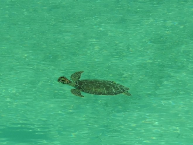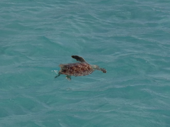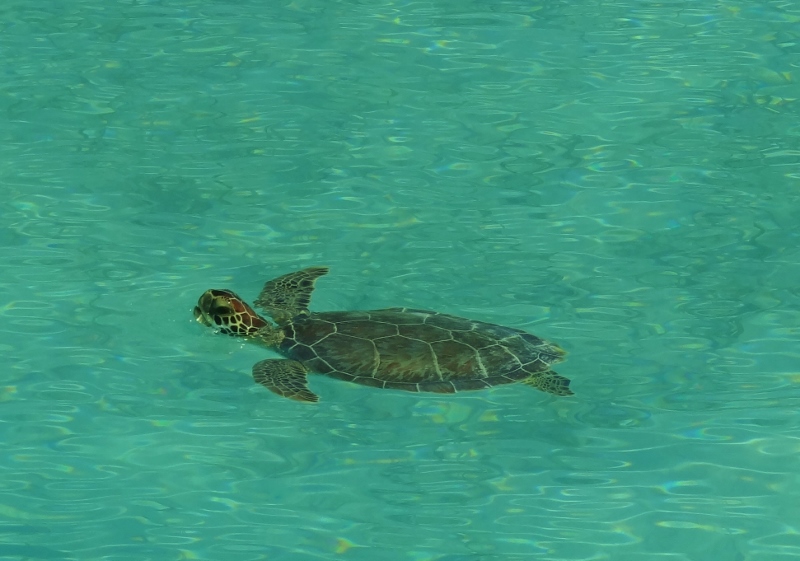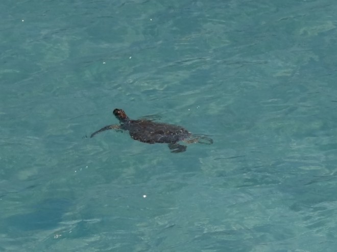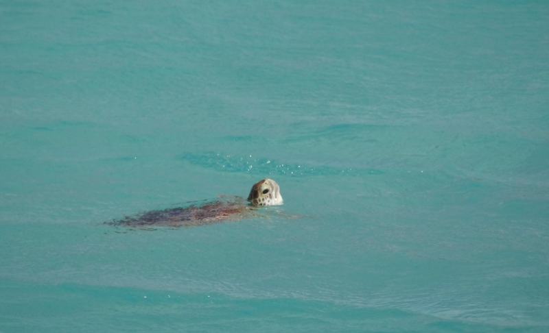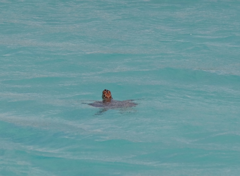 Turtles are not sociable and the four or five that often swam around hardly ever came close to another one. The water depth ranged from 4ft to 6ft and if not too windy, you could easily see them as they swam, nibbled turtle grass 🙂 or napped.  Every so often- oh maybe every 4mins- you’d have a photo-op when one would surface to breathe. Typically they’d take 2 to 3 breaths, then swim back down, so I had 15-20 seconds to press that button a few times.