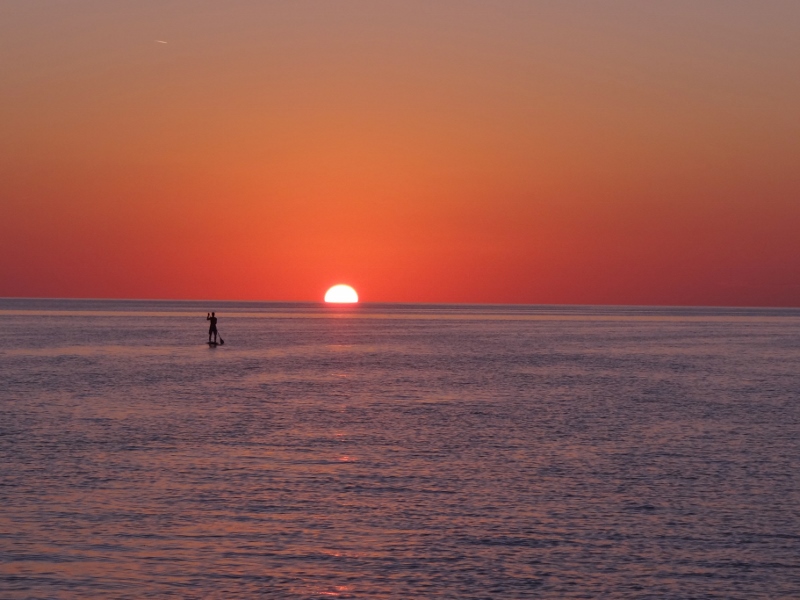 Of course, I had to paddleboard into the sunset. Lori was probably doing some planning . . .