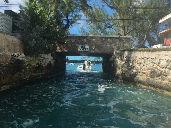 This is the entrance to Lake Victoria in George Town where the dinghy dock for town is located. Calm this day, but wind & strong tidal current can result in 1’+ standing waves. A further challenge is that while incoming boats technically have the right-of-way, some don’t look or don’t care, leading to the dangerous game of chicken.