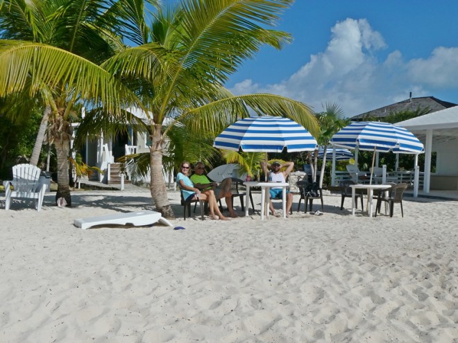 This is something people think we do all of the time, but sitting around a beach bar is actually a rare treat. This one is new – the Peace & Plenty Beach Club in Elizabeth Harbour.