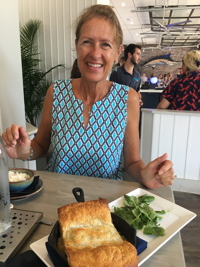 Enough history – we came to eat! Lori enjoyed her oyster pie at a new restaurant named Hooked.