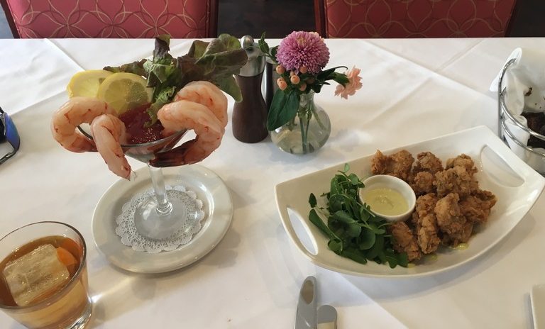 High Cotton. Fantastic fried oysters & shrimp cocktail. You (we) have to love any restaurant which serves donut holes as an appetizer! Really, really, tasty with a bacon, cinnamon glaze.