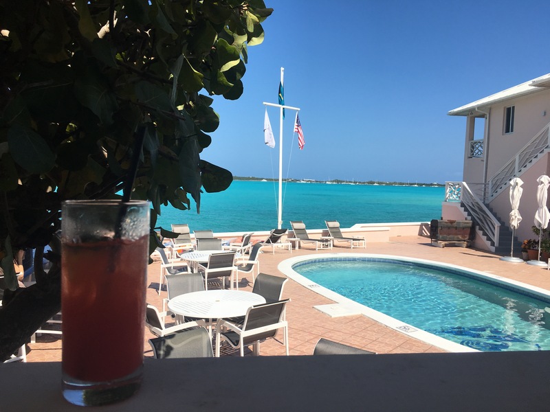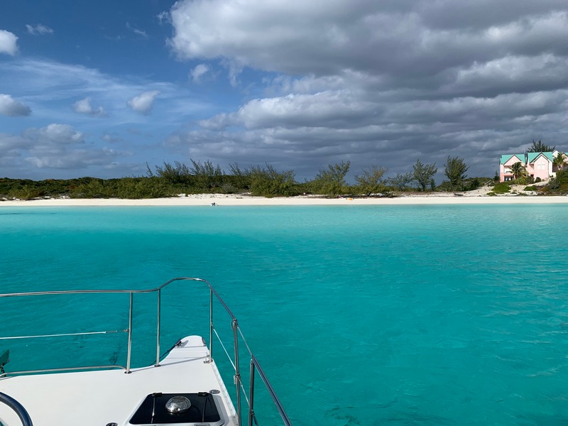 This is the view the tourists see from the Peace and Plenty Hotel looking out at the 300+ boats anchored out in the harbor.Overall it was a great season! Lots of time with old cruising & land friends, along with a some new friends. While we had planned on staying a bit longer, there is a long stretch of windy weather ahead so we need to head about 50 miles north up the Exuma chain, which allows us to cross over from the east side (basically open ocean) to the west side (the “bank side”) of the chain which has protection from the most common east winds. Over the next 2 weeks we’ll slowly continue up another 50 miles stopping at favorite spots such as Black Point, Staniel Cay, the Exuma Land & Sea Park, then Highbourne Cay.