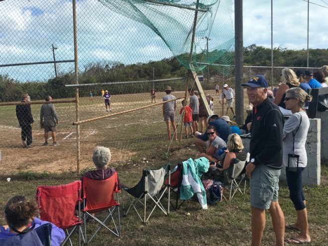 As part of the George Town Cruisers Regatta, there is a softball game between the cruisers and Bahamians. We had never attended before so it was fun, although the Bahamians were so late we only saw part of the actual game.