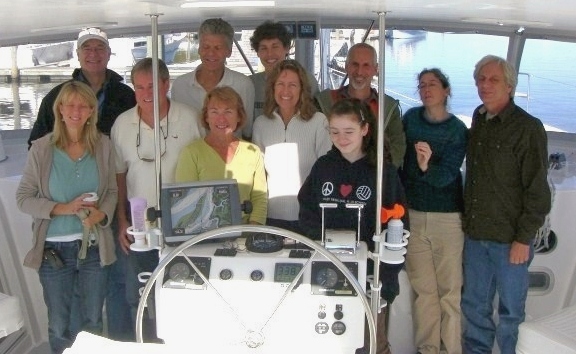 It seems like just yesterday! This was our bon voyage party aboard Ortolan, our Maine Cat 41 sailing catamaran 10 years ago at 10:10 on 10/10/10.