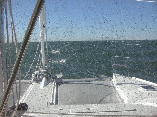 Sailing west on Long Island Sound 2 hours later, our beautiful fall day turned uncomfortable with strong west winds making a very wet ride as we headed towards NYC. My first smart decision as Captain was to heave-to, heading back to a marina in Westbrook – I didn’t want Lori to abandon ship on our very first day!