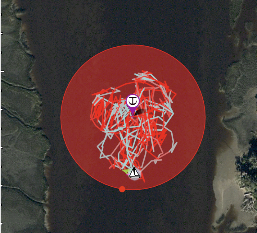 We eagerly anticipated our November 1st departure as a nasty cold front complete with gale storm warnings was due that evening. We had just enough time to arrive at our marina near St. Augustine for the stormy weather. Wait … our insurance policy doesn’t allow us to cross into Florida until after 12:00 noon on the 1st! Back to the insurance underwriters – of course they’ll let us leave 4 hours early (in sunny & calm weather) to arrive at a safer location?? Nope! So that left us stuck up the creek for another 1 1/2 days of high winds. Our anchor drag app shows our twirling path over our 1 1/2 weeks anchored in the Brickhill River as the strong wind & current fought each other.