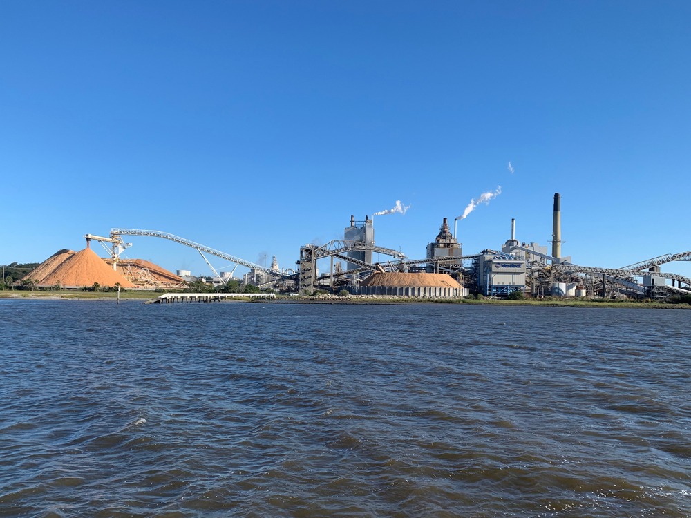 Paper mills are frequent sights in the south. Almost picturesque from a distance, but noisy & stinky to dock near – think millions of burnt pizza boxes – but worse!