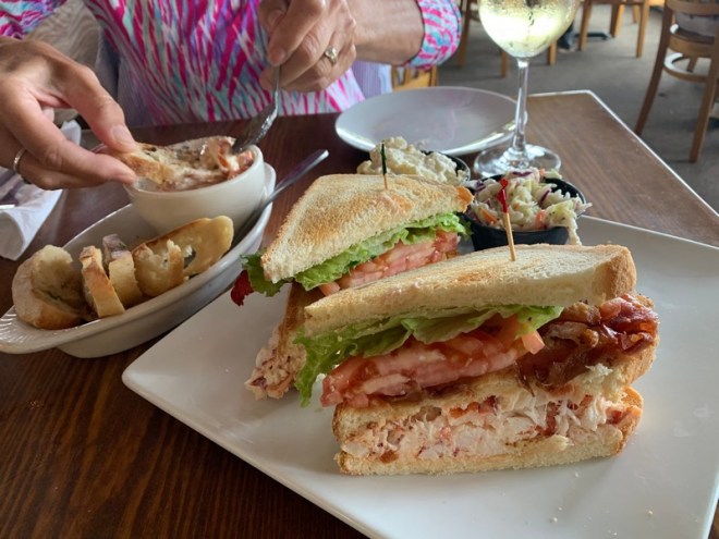 After brief anchoring stops in Harpswell & Friendship, our first stay was in Rockland. We are beginning our lobster cuisine with a lobster BLT accompanied by lobster stew.