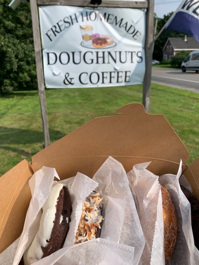 Saved by a bike trip to a fairly new donut shop, The Only Donut, featuring potato flour brioche donuts!We often stumble upon unique surprises … now covered in shrink wrap within sight of our slip in Belfast is the USS Sequoia as she arrived 2 years ago aboard a barge from Virginia. The Sequoia was known as the “floating White House” with 8 U.S. presidents using her between 1993 – 1977. Numerous famous events took place aboard, including Roosevelt & Churchill planning D-day with maps on the salon table, JFK’s last birthday party & Nixon’s making his fateful decision to resign. You can spend a few hours reading the very fascinating history & viewing photos on-line from numerous sources. After tens of millions of dollars & several years of restoration right here, she will be re-launched & cruise back to DC under private ownership.