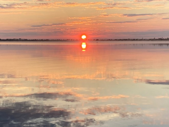 Reluctantly I got up early enough for this great sunrise, but couldn’t go outside to take a better shot due to the tens of thousands of midges swarming outside. Some areas of North Carolina suffer from midge invasions (various small flying bugs) which swarm & leave their hard-to-remove “deposits” behind.