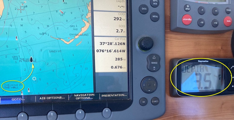 With one more stop needed on the way down to Norfolk, I decided to stop at an anchorage we had stopped at our first year near Gwynn Island. The name of the entrance should have been clue: “Hole in the Wall” – should be called “Thread a Needle”!