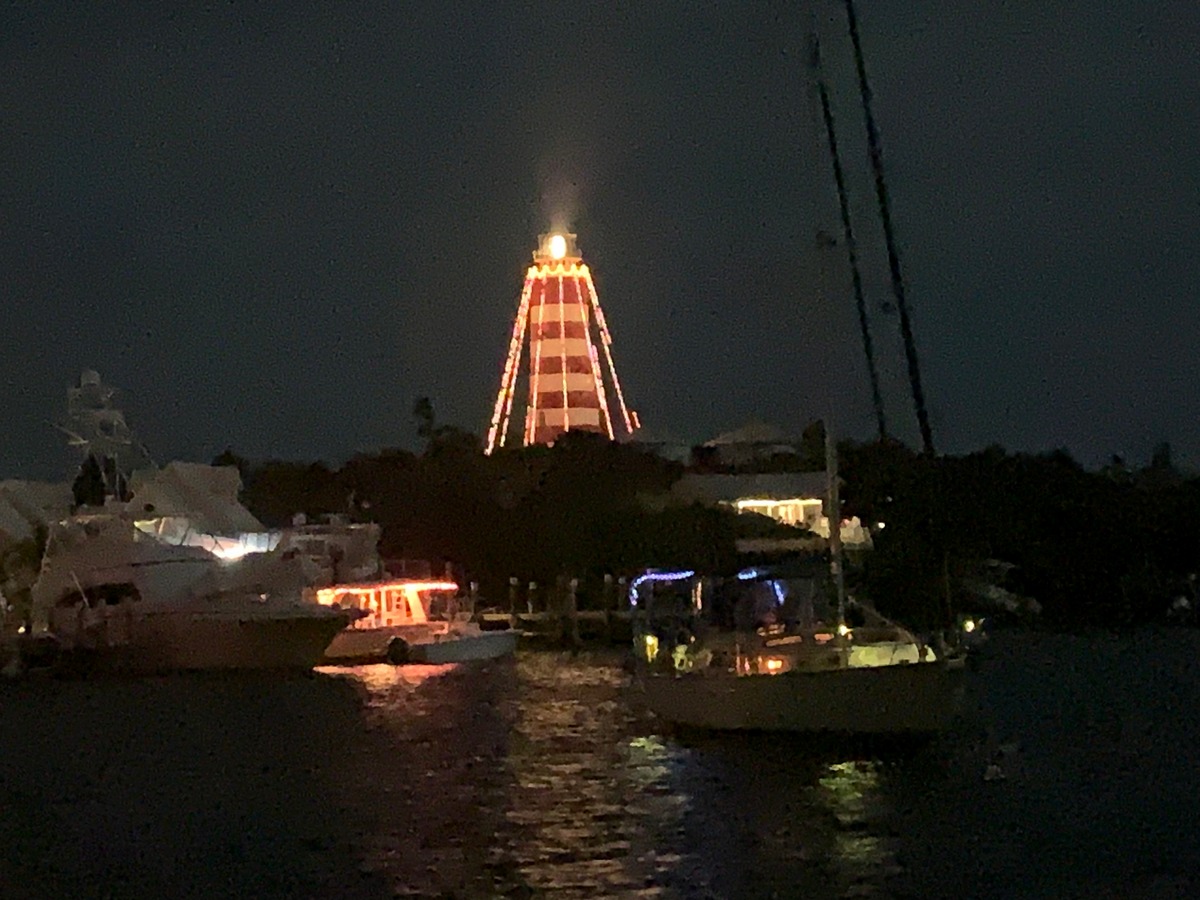 Hope Town decorates their lighthouse with lights strung down the sides every Christmas. It is the last operational kerosene-fueled lighthouse in the WORLD. Jugs of kerosene are delivered by boat, carried up from the dock & raised up into the lighthouse. The light’s rotation is due to being hand-cranked twice a night (via a long 50′ chain similar to a cuckoo clock).