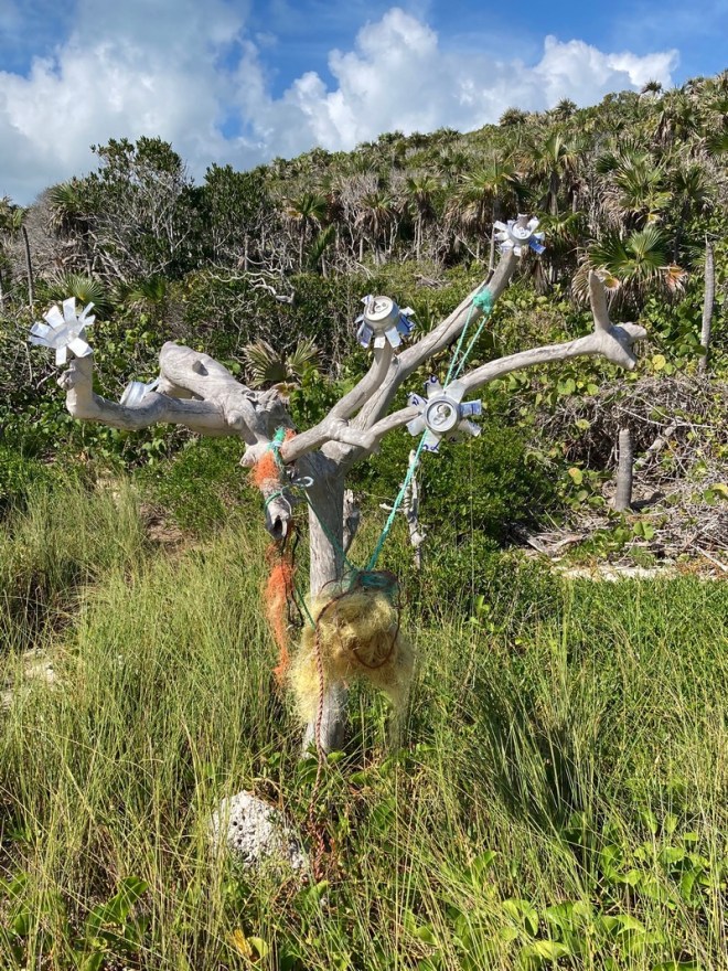 One of the paths from the harbor to the ocean beach is called “The Art Trail”. People (especially kids) take beach trash & get creative.
