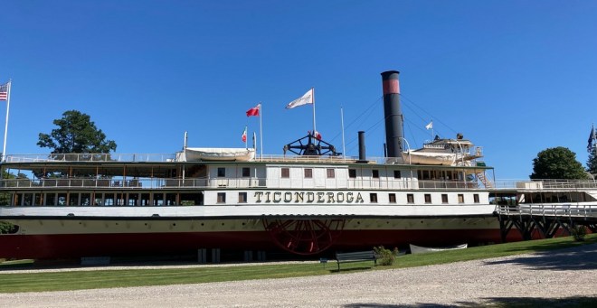 As if we don’t see enough boats & ships as it is, we had to check out the Steamboat Ticonderoga, restored, but now 2 miles inland at the Shelburne Museum.