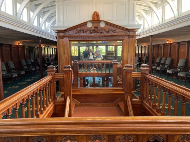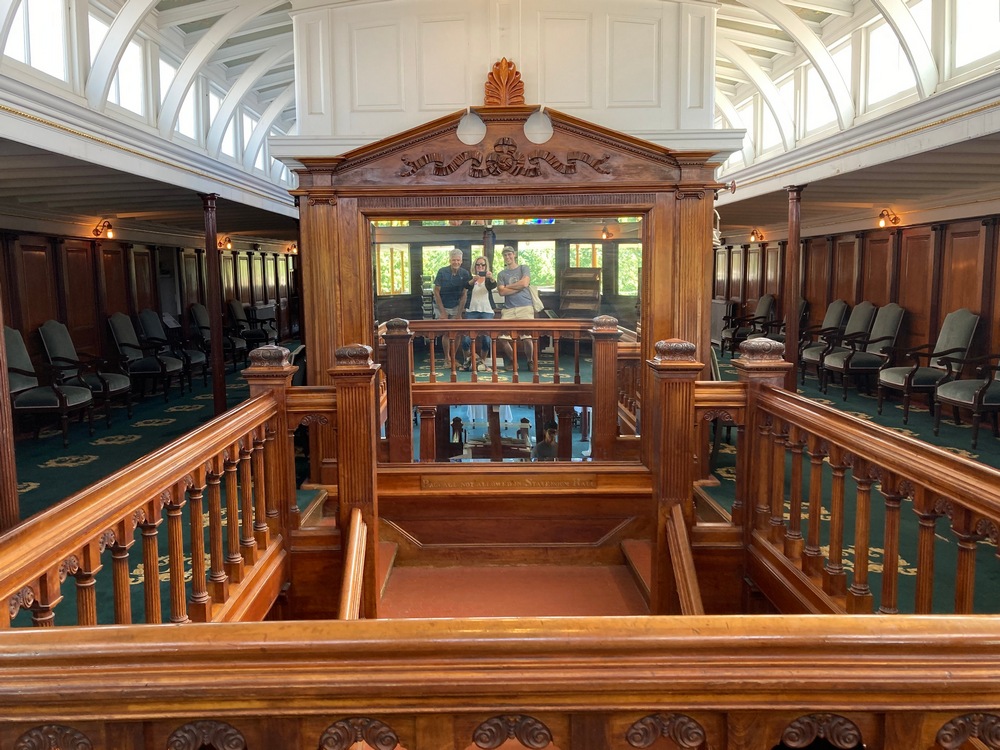 A selfie with the birthday boy on the grand staircase of the Ticonderoga.