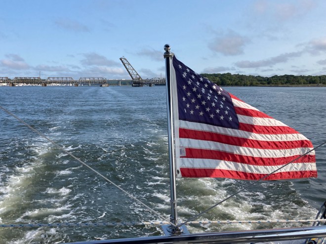 Now we’re off! Down the Connecticut River. We usually don’t need this Amtrak bridge to open for us, but it was high tide & recent rain caused some river rise.