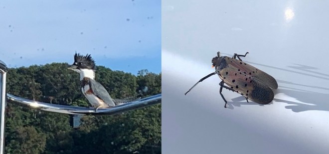 This cute Kingfisher visited us a few times. Unfortunately, these Spotted Lanternflies (named as they have a bright orange body visible when they fly) swarmed us on our last day in NJ. Dozens landing & hundreds floating! on the water all around us! They are highly invasive, having come over on ships from China into NY & NJ a few years ago. They have quickly spread to neighboring states causing great concern from the USDA. While they devastate many trees & plants, they are especially destructive to various fruits & grapes. Unfortunately in the U.S. (unlike Asia), they have no natural predators to slow them down.We will soon arrive in Cape May, NJ, after a sometimes challenging 116 mile offshore run. We’ve had nearly perfect cruising conditions so far!