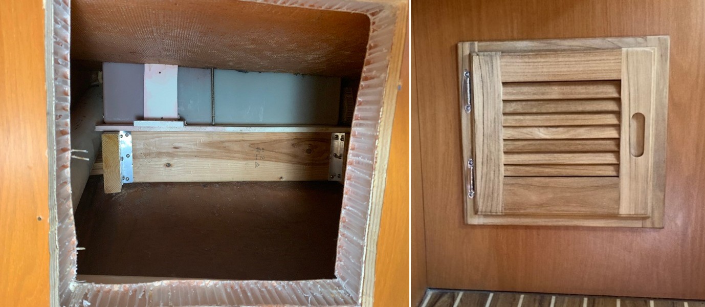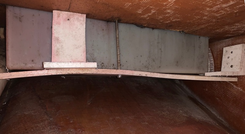 AFTER:  Originally only a 10″ round inspection port for access, so I had to cut-out a bigger opening & could still barely reach in, but provided the diesel tank with much better support.