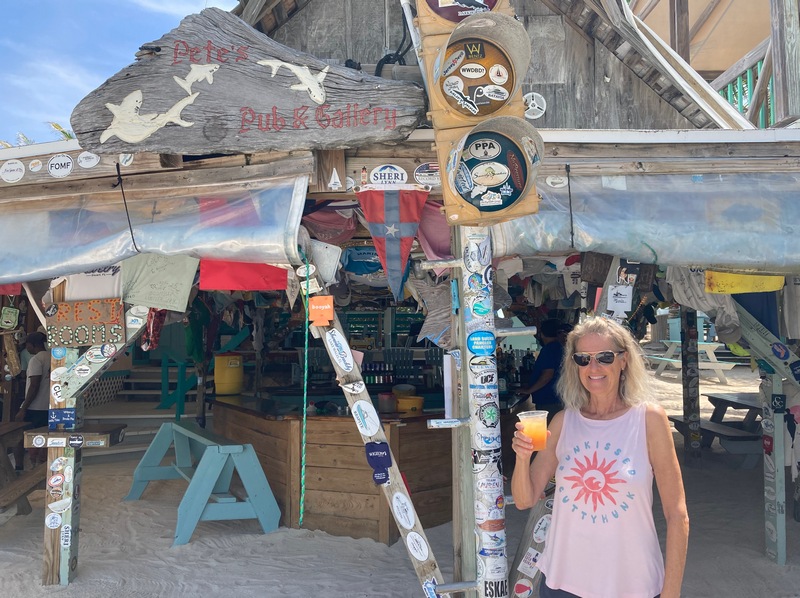 We had an easy, pleasant 56-mile trip from Spanish Wells, Eleuthera north to Abaco. Unfortunately, no fish caught on the way 😦 We at least snagged the last mooring in Little Harbour (just inside the cut), home of Pete’s Pub.
