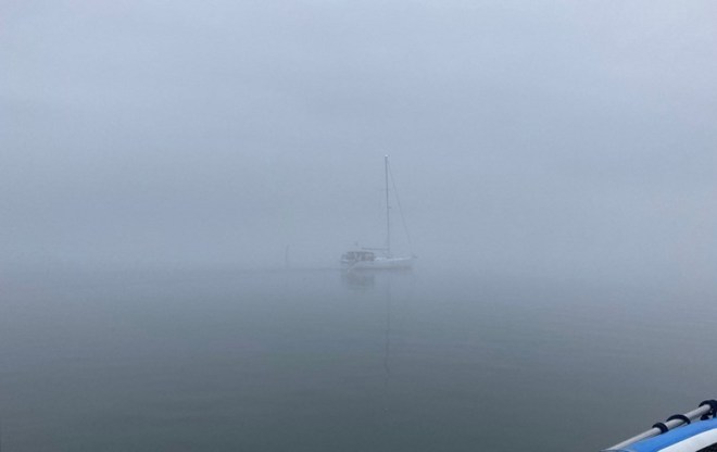A few foggy mornings underway including transiting the C & D Canal. While just entering we heard a Coast Guard announcement over our VHF that the canal was “closed to all vessels due to heavy fog until further notice”. Yikes – now you tell us! This photo was as leaving Cape May. Fortunately, our newer radar works really well, as we needed it several mornings.