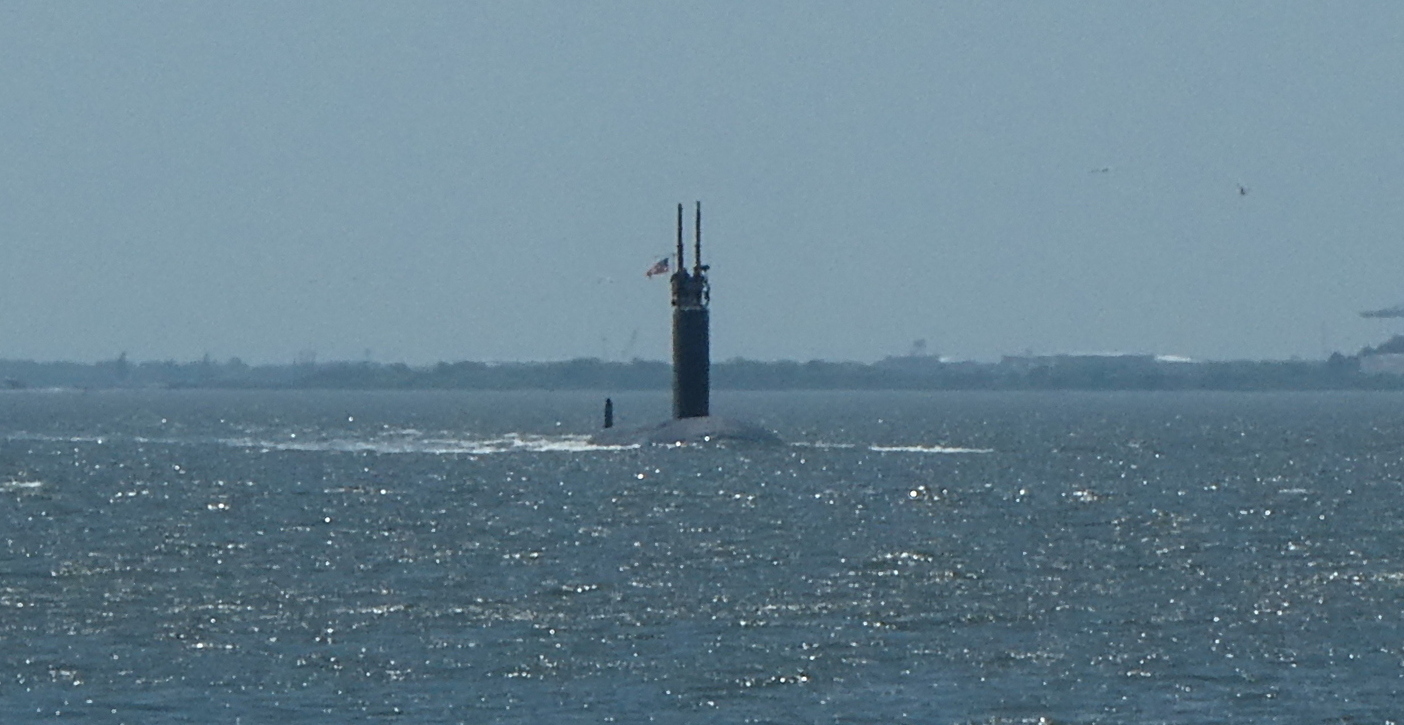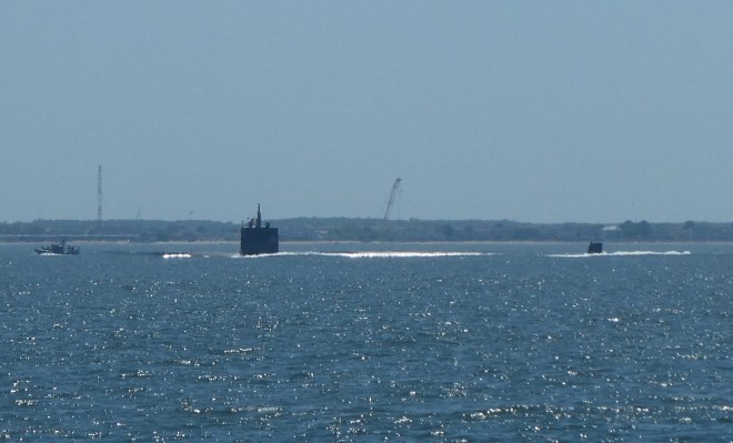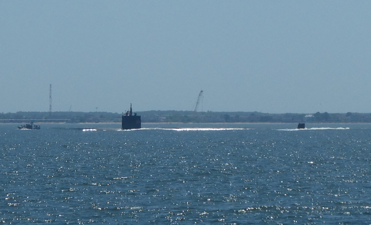 It’s not every day we have a submarine on our tail & gaining quickly! Norfolk frequently has naval ships transiting with lots of VHF announcements & warnings to “maintain a security zone of 200 yards”. This sub pretty much crept up on us without a word.