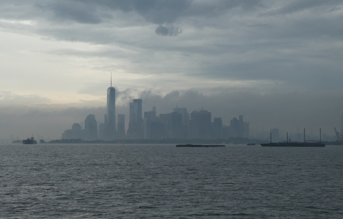 The NYC skyline was just opening up on yet another foggy morning.