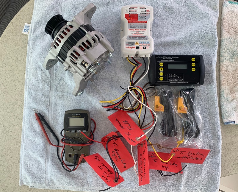 Our most time-consuming project was the installation of new alternators & alternator regulators with remote displays. The remote displays ended up being the most challenging – not only was running the wires to the helm very difficult, I then had to re-run the wires a 2nd time relocating all to keep away from other wiring & devices, as we discovered electrical interference causing the displays to show erratic messages.