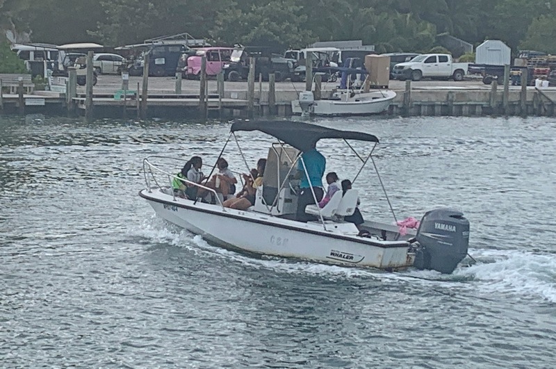 Every morning the dock also becomes the bus stop for island kids going to school. While Hope Town (Elbow Cay) is one island with roads through-out its 3 miles, there is a small portion (by the lighthouse) which is inaccessible due to low, watery mangrove areas, so every school kid, worker, resident & visitor has to “ferry” across. The elementary school is a short walk up the hill past the freight dock. High Schoolers have to arrive & then take a larger ferry 6 miles across to Marsh Harbour.