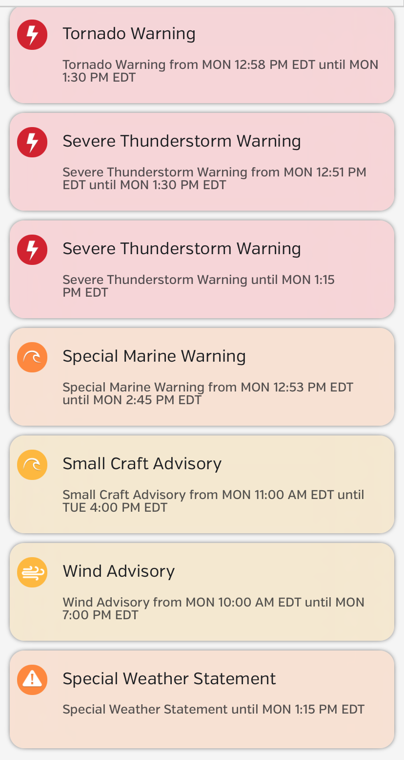 A Tornado Warning + was our welcome back to Florida! Fortunately, we were at a very