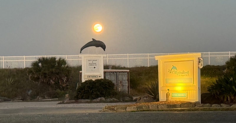 The sun setting (for good?) over Marineland – the world’s first “oceanarium”, originally named “Marine Studios” built to film early underwater movies. On opening day to the public in 1938, they figured on a few hundred curious tourists to stop by – instead over 20,000 tourists clogged A1A for miles.