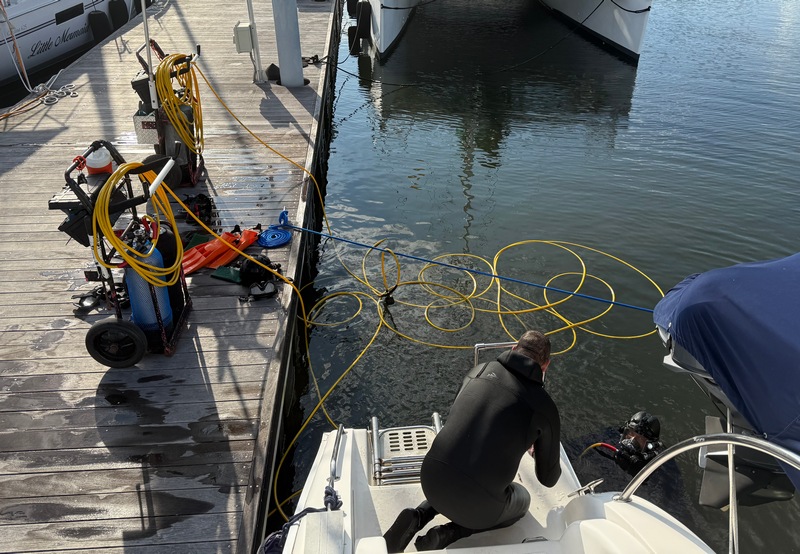 While I used to clean our boat’s bottom myself before crossing, our Manta has roughly twice the square footage of bottom surface than our PDQ. Florida’s warm water, along with hardly underway for 3 weeks, the growth quickly accumulates. These 2 divers spent 1 1/2 hours with tank air & without any breaks – so the same job would have taken me … days. Once underway to the Bahamas the growth isn’t as bad & I can keep up with it myself.As our Bahamas prep winds down (major provisioning of groceries, wine & beading supplies for Lori) I’m studying the weather daily to see if we should speed up, or slow down, based on approaching weather windows. As December moves along & especially into January, the good windows become narrower & fewer. Some years we’ve had no wait at all, some we’ve moved up our schedule rushing to leave now & one time (2 years ago) we had to wait 3 weeks. Which will it be this year?