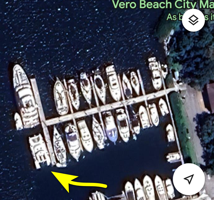 Our base for Bahamas prep is Vero Beach, where we have our storage unit, a dentist & doctors. From when we were at the Vero Beach City Marina last year, this is Twin Sisters from space courtesy of Google Earth.