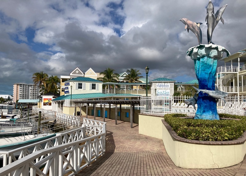 The night before, where we anchored in Lake Worth, West Palm Beach, a “heavy lift vessel” was loading its last yacht for its trip to the USVI, then Finland! Quite the show – lowering the slings, positioning them, the slow pickup process, pivoting to fit between the cranes, then into position between the other vessels took about 4 hours. Then several more hours to create a cradle & strap her down. The ship departed after us in the AM, but quickly blew past us at 18 knots.Port Lucaya, adjacent to Freeport, on Grand Bahama (one island we’ve never stopped at). Second to New Providence (Nassau), it the most populated island in the Bahamas. If you’ve gone on a Bahamian cruise, you’ve likely stopped at Freeport, or one of the several cruise line-owned private “resorts” on Grand Bahama.