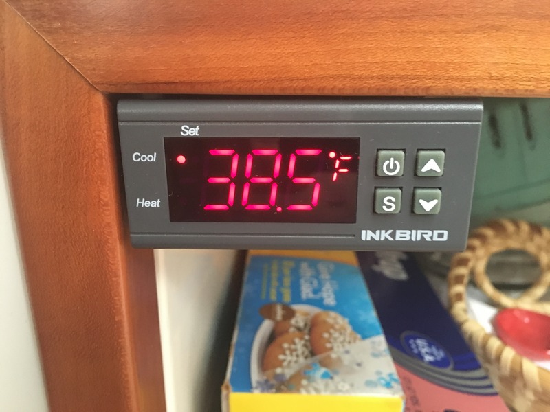 As this was experimental, I didn’t want to spend $90.00 on a “marine” digital fridge thermostat, so I found this Inkbird brand on Amazon for $15.00, which feature for feature appears to do the same & is working perfectly.