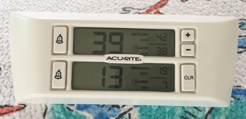 While the fridge should operate most efficiently with its factory type of thermostat, we’re much happier with our after-market digital one. It helps keep the temp much closer to our desired 38 – 39 degrees. Before, not only was there a problem going too high, there was also a problem on cold nights – even set on #1 the fridge temp would go down to 32 degrees with veggies beginning to freeze.
