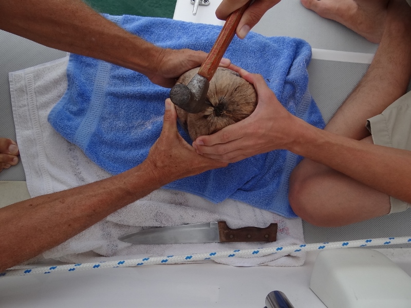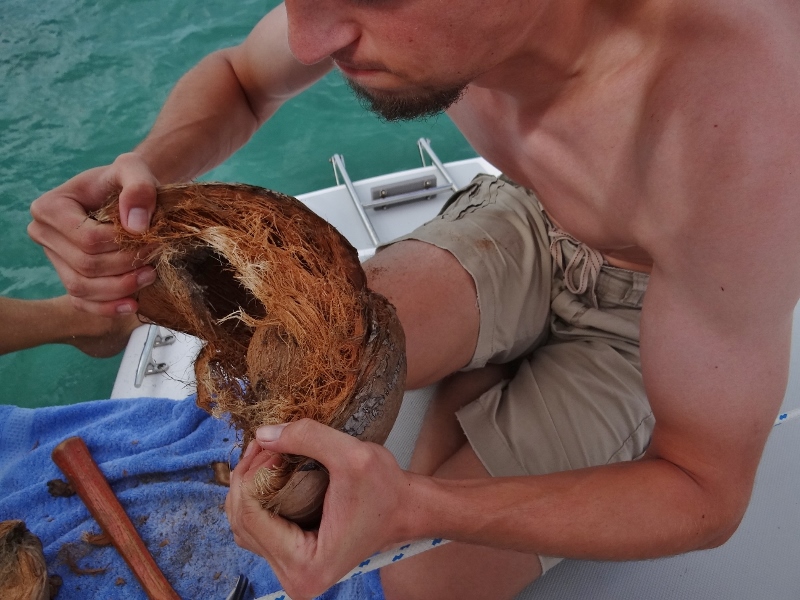 Crack open the coconut and save the milk- or add gin and drink it, then nap ‘cuz you must be pooped by now