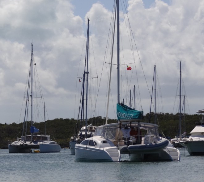 “The harbor looks busier than when we were last here”, commented the Captain as we rounded the corner and entered Hope Town harbor. Well, five years ago we had a narrow focus; get on that MC41 and sail around Abaco. Although the harbor appeared full, many moorings (once you looked closely) were open and most were not marked with a “reserved” bottle. We selected a double green along the SE side fairly close to Nike, a privately owned MC 30 (for sale) and Moondoggy a MC30 in charter. Captain Ron was engaged in the full afternoon orientation with this week’s charter family. He stopped by to chat afterward and while I’m not really sure he remembered us, he was complimentary about the boat- hey if he’d only come sailing with us!